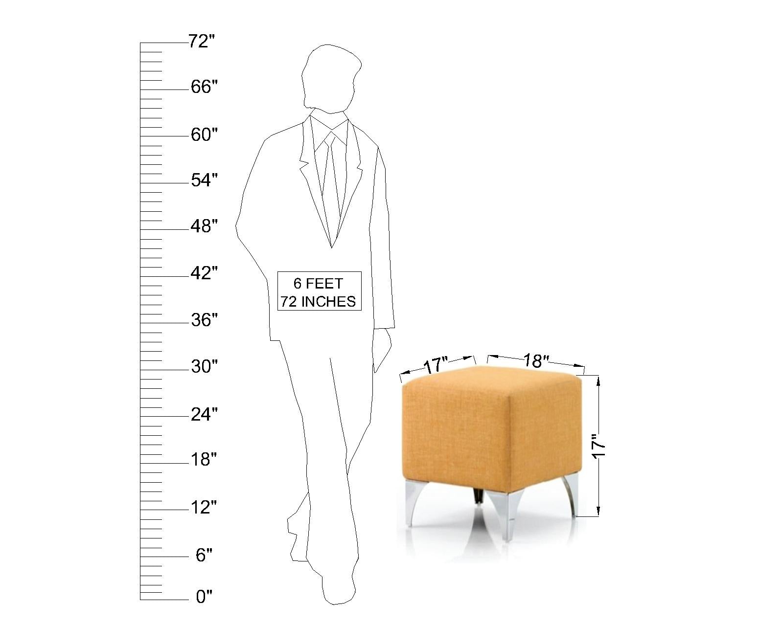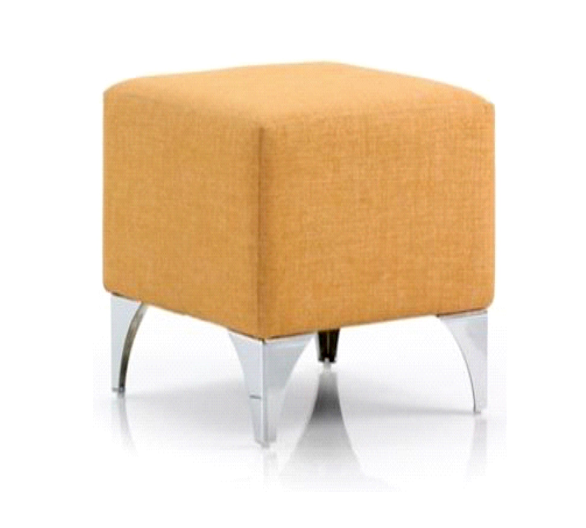 Modern Square Pouffe with Mustard Yellow Fabric Footstool and Silver Chrome Legs for Living Room
