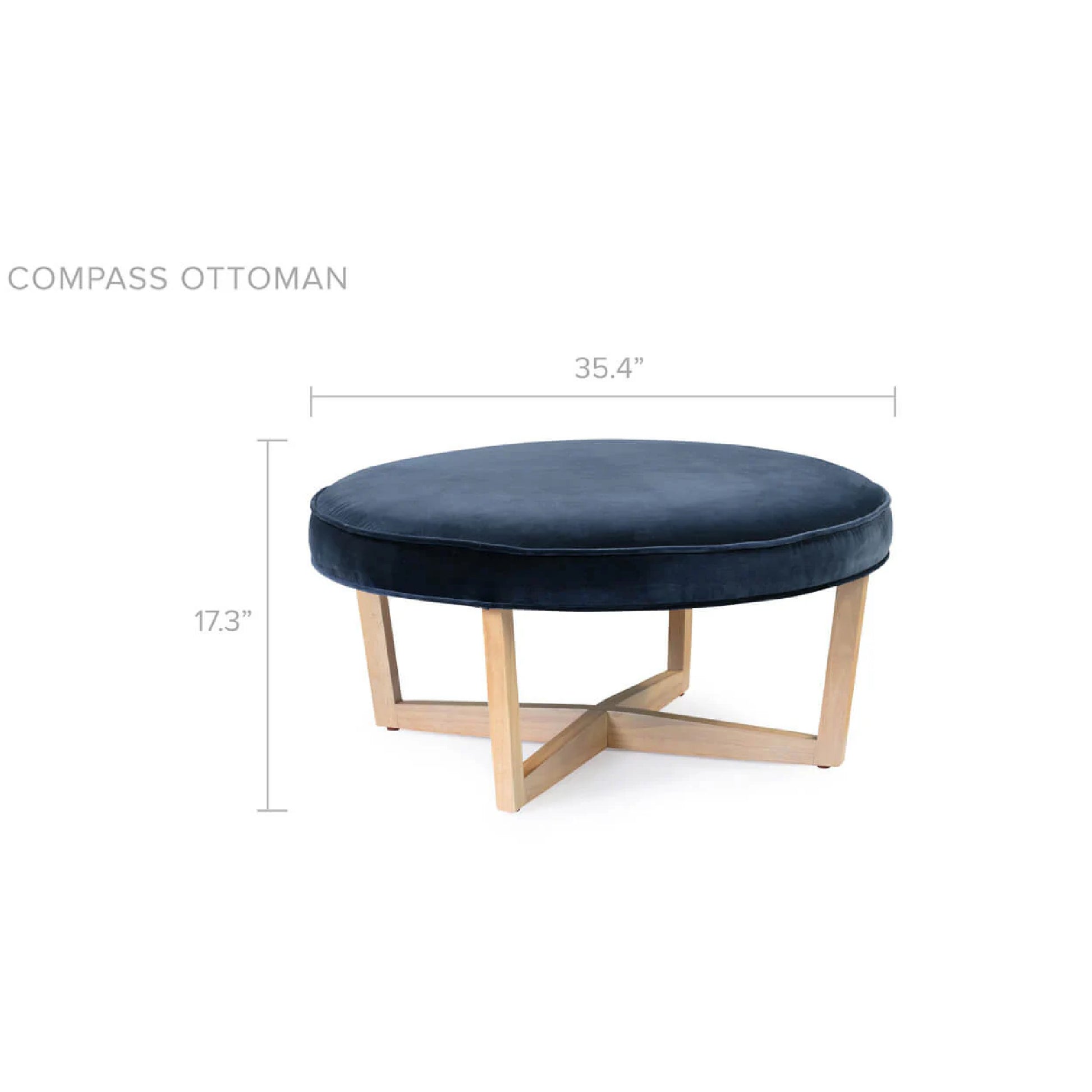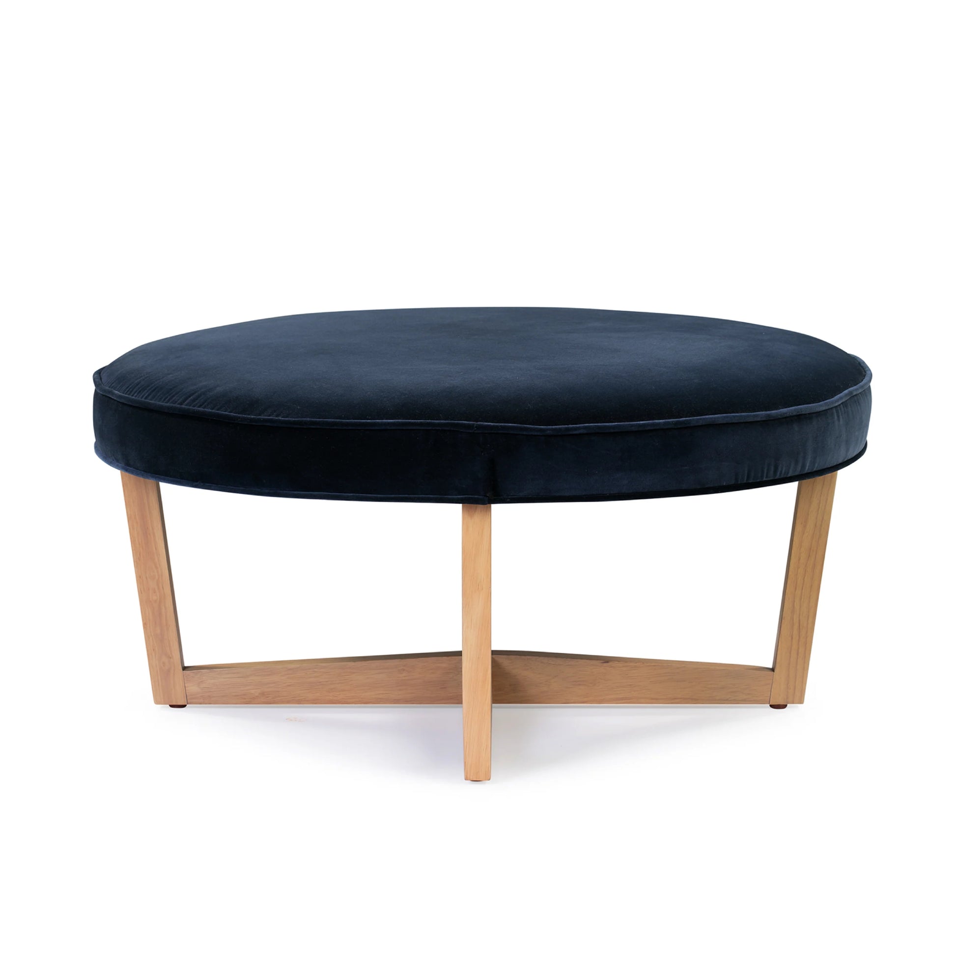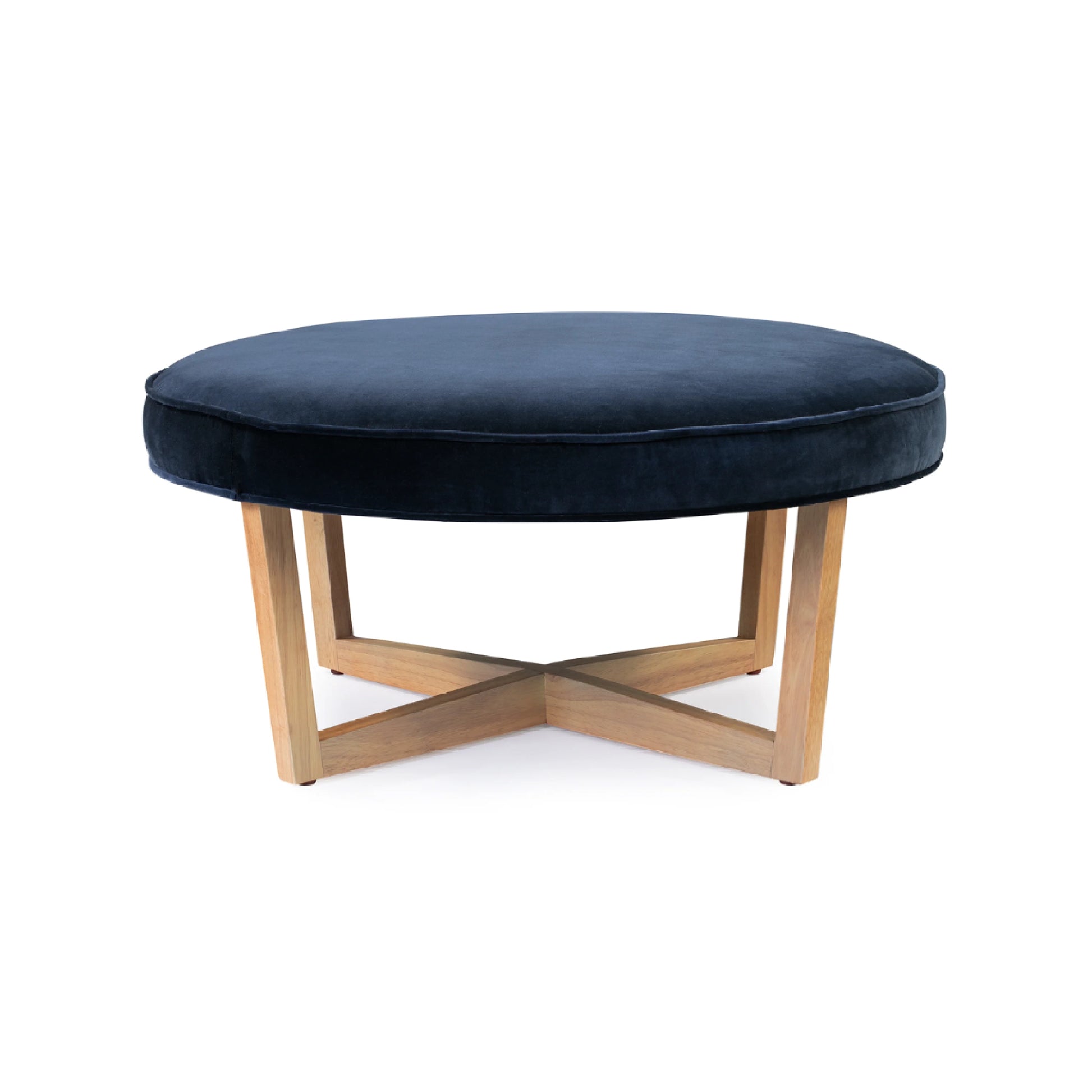 Modern Navy Velvet Pouffe Ottoman – Chic Round Footrest & Extra Seating for Living Room