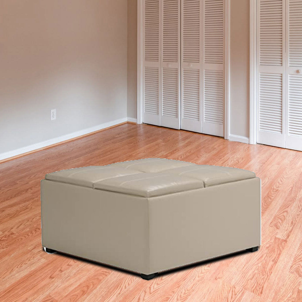 Multi-functional Storage Ottoman - Tufted Faux Leather Footrest & Coffee Table for Living Room