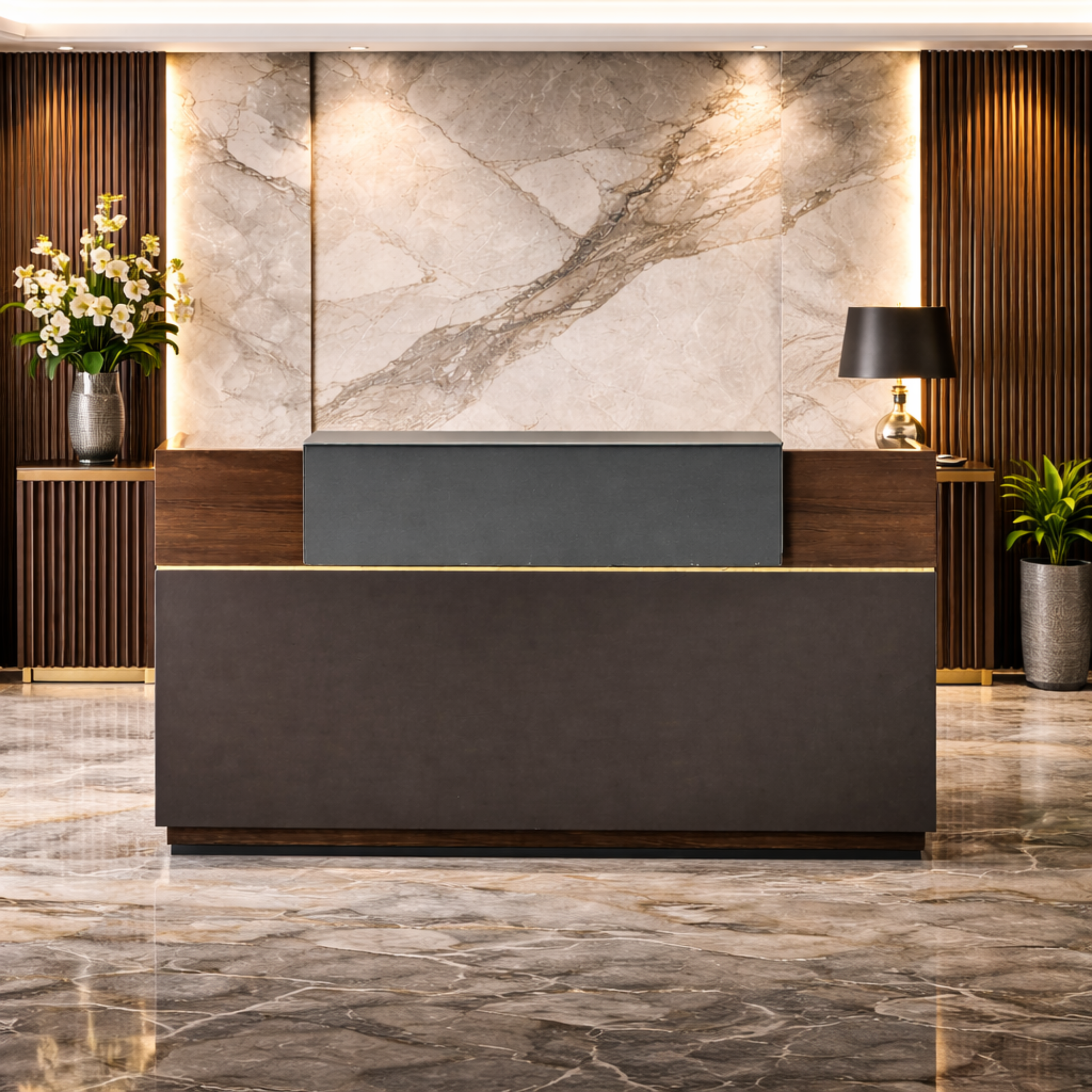 Reception Table C Shaped High Front Panel with Wood and Laminate for Lasting Durability, Natural Feel and Luxurious Looks