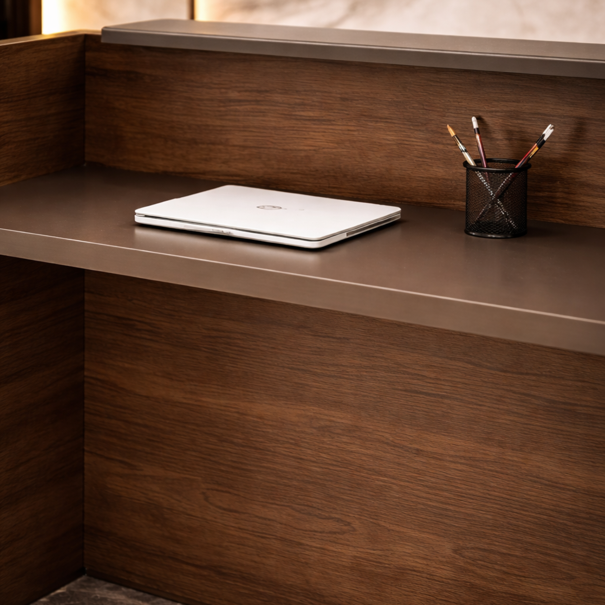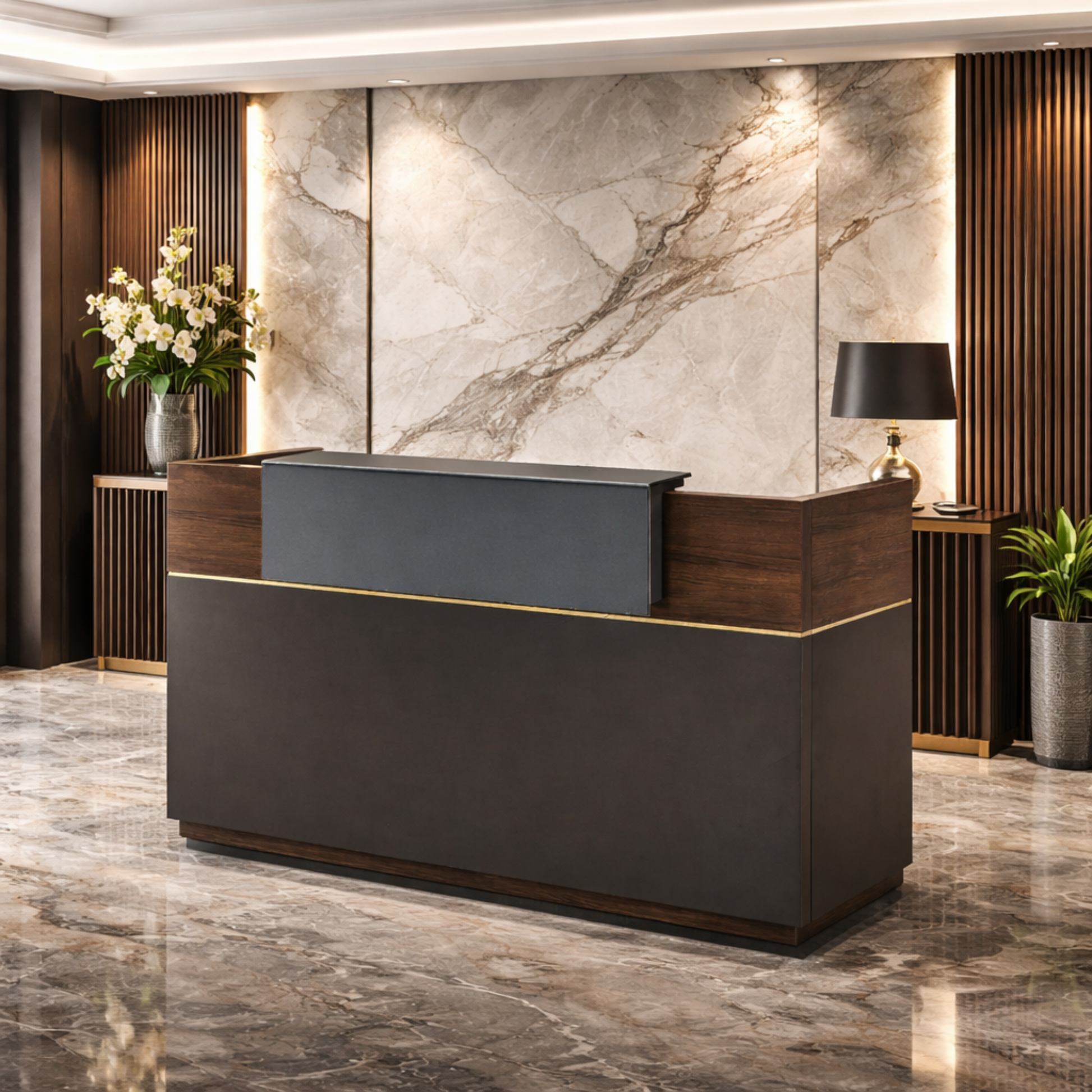 Reception Table C shaped high front panel with wood and laminate for lasting durability, natural feel and luxurious looks