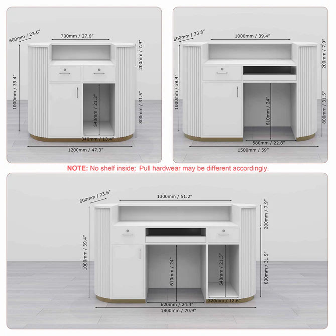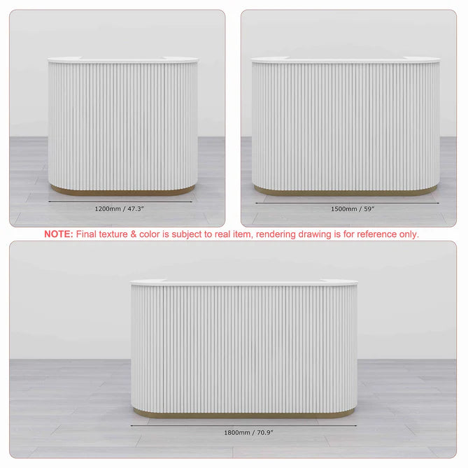 Reception Table for Office Luxury Modern Round Custom Counter Stylish Design with drawer Keyboard tray and CPU Space and Storage - White Color