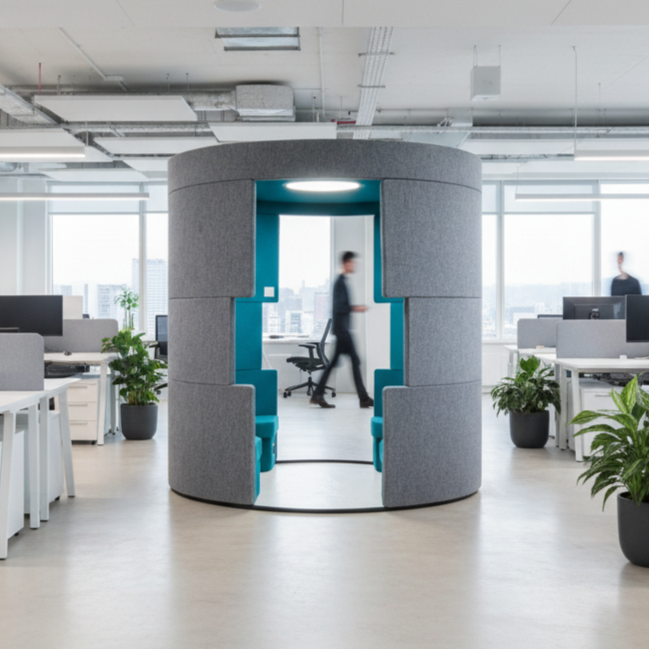 Feature: Featuring a streamlined design, the Soft Booth is an agile workspace solution. Its integrated, low-profile casters and a user-friendly table-lever locking mechanism enable swift and secure repositioning. The modular ceiling system offers three distinct enclosed options, providing tailored acoustics and privacy while maintaining a space-efficient footprint.
