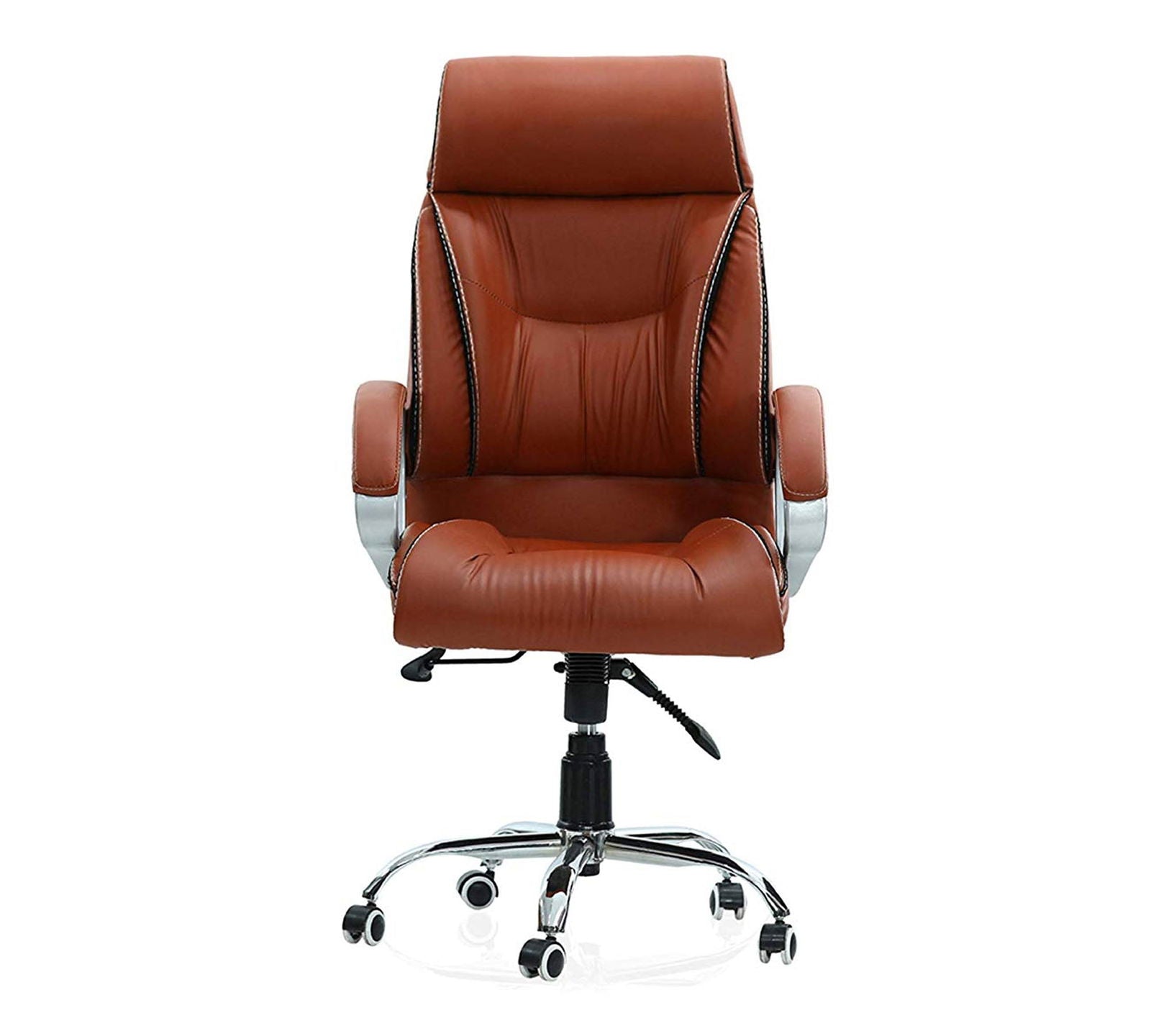 - Features:- Rexin upholstery WITH PU molded and foam 32/50 density with headrest and full Backrest back support and full cushion seat and back AND 50mm dia nylon castor ON chrome base with PP cover
