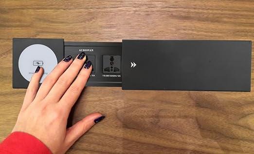 Product Description:- Upgrade your workspace with the Slide-Out Cable Cubby Wireless Charger, designed for conference tables, office desks, and countertops. This slim, concealed electric box features a smooth sliding aluminium lid that hides all sockets when not in use, ensuring a clean and clutter-free workspace. Equipped with fast wireless charging, universal power sockets, USB ports, HDMI, LAN, and more—this unit offers all modern connectivity in one compact system.