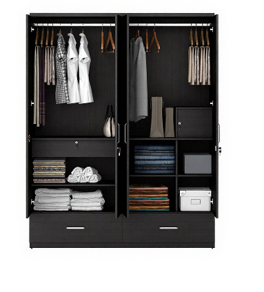 Wardrobe for Compact Bedroom Modern 4-Door Wardrobe Compact Design, Premium Finish.