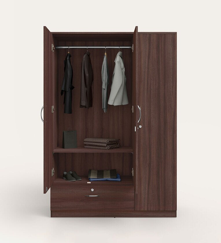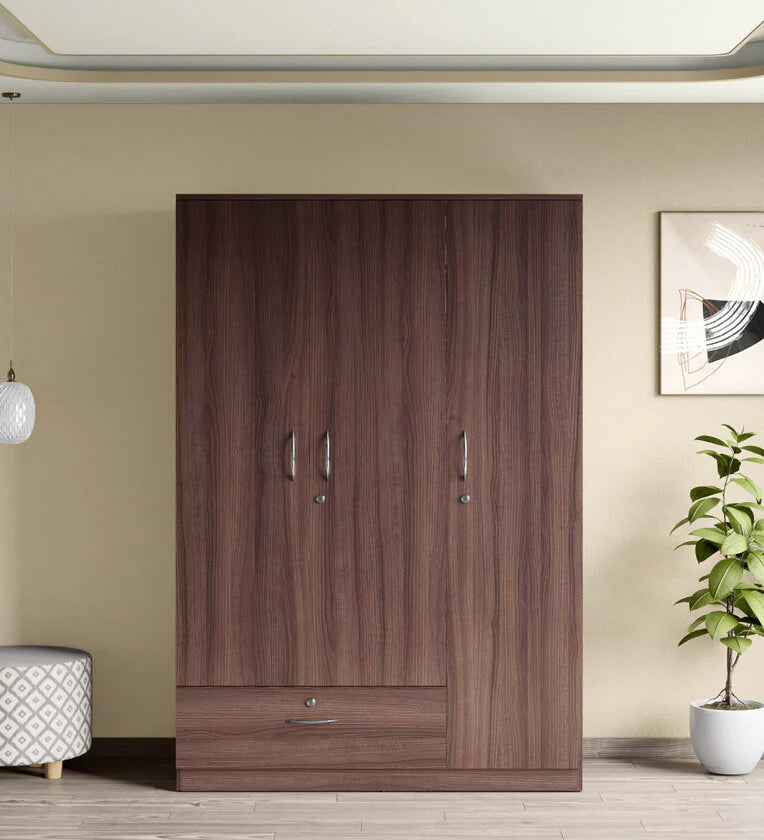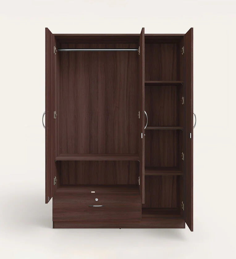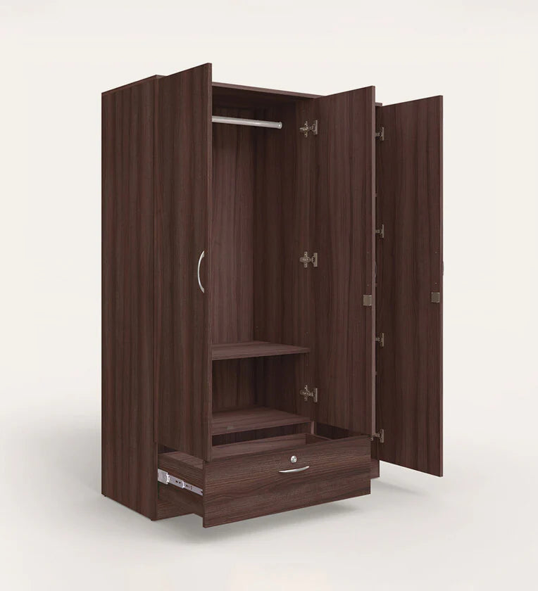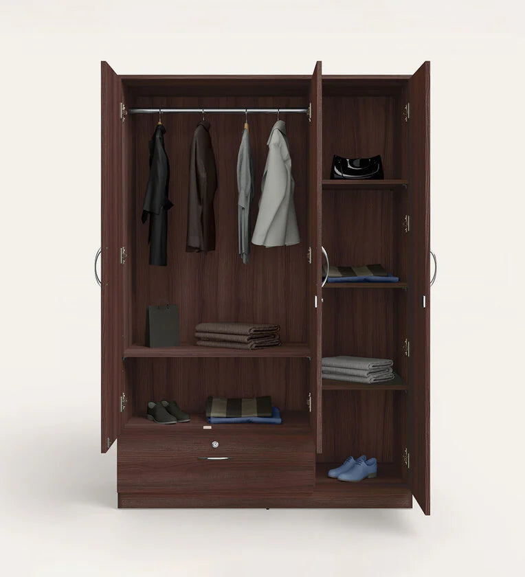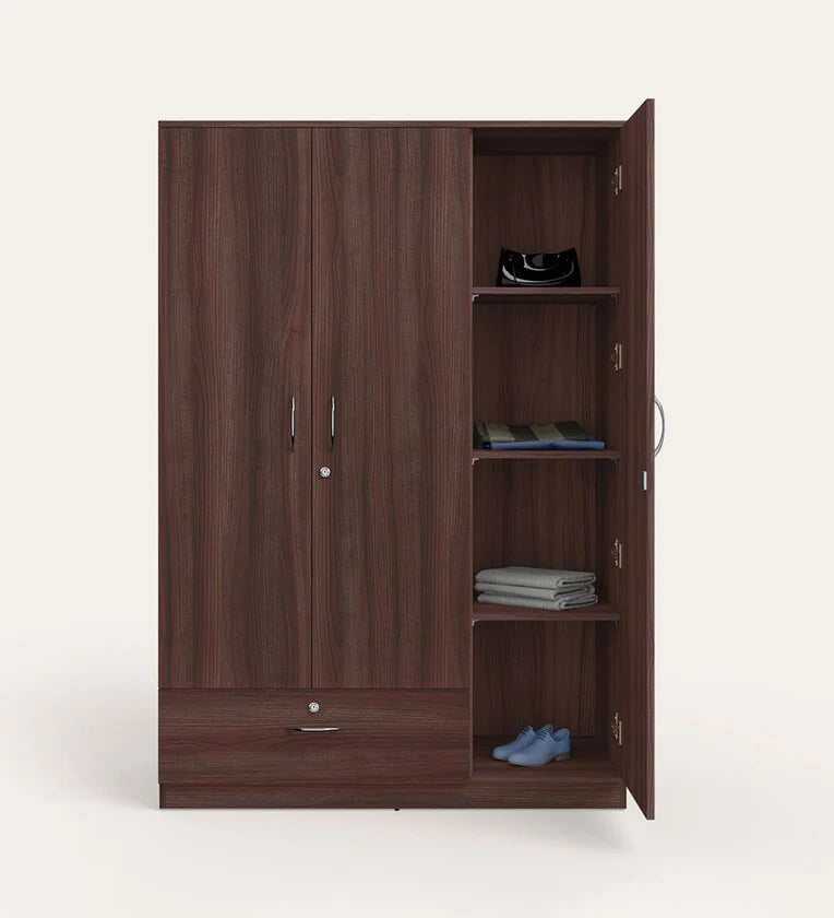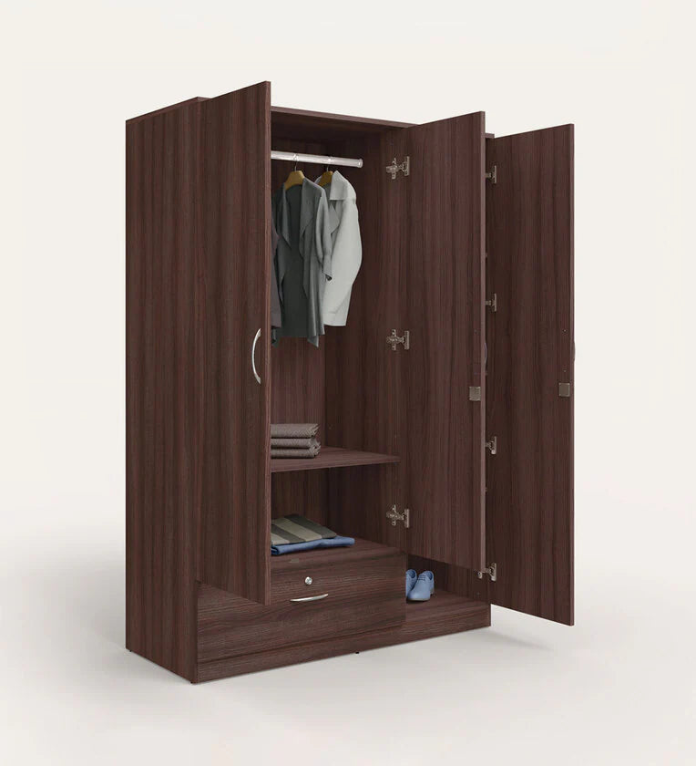 Wooden Almirah for Home Furniture in Particle Board Material – 3 Door with 1 Drawer, Stylish Handles for Bedroom Storage