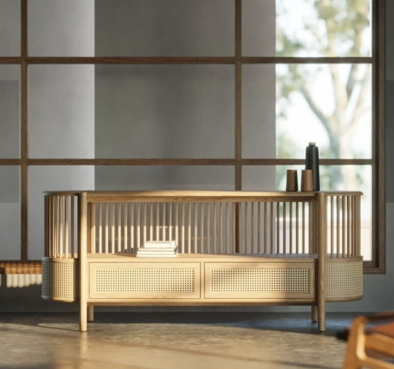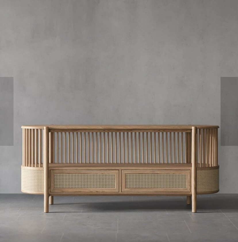 Wooden Console with Modern Rattan & Wood Console Cane Work Furniture