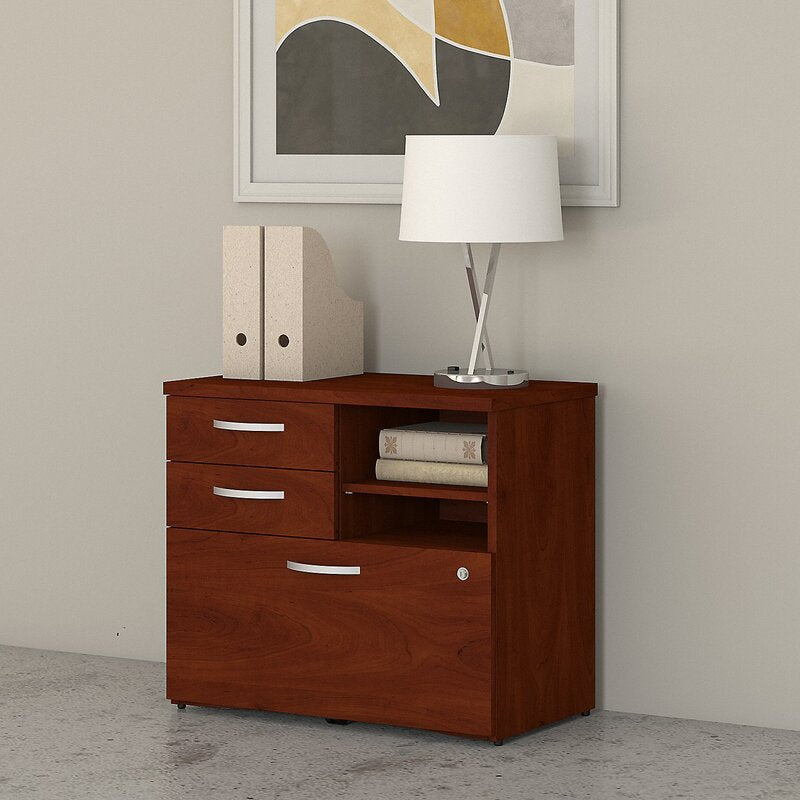 Features: 3 Drawers, 1 large Drawer with 1 Open Shelf in 2 Sections