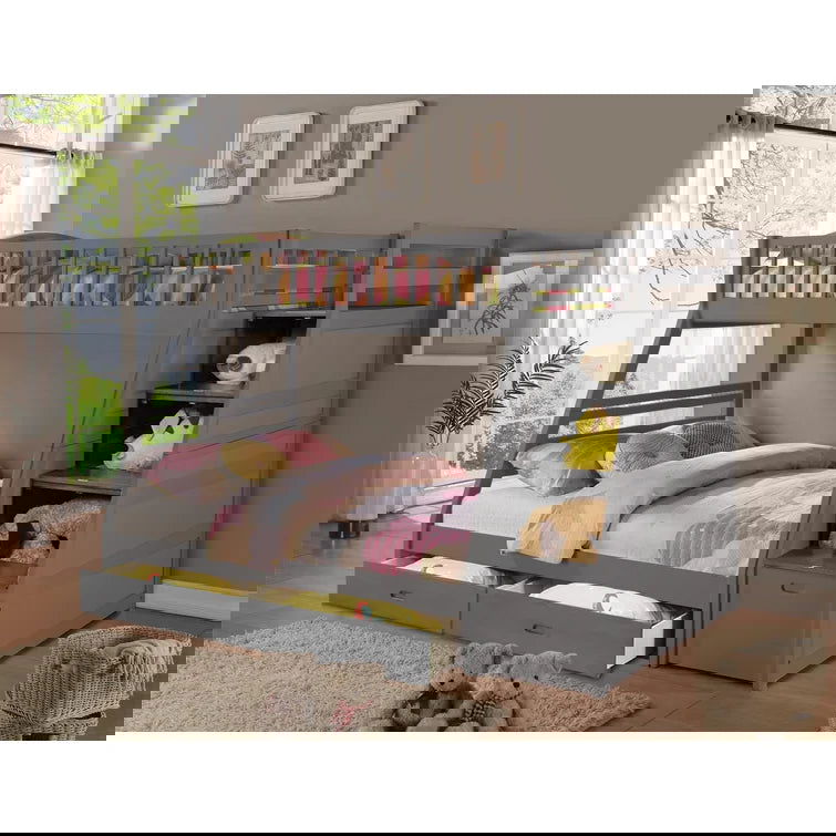 Twin over Twin Staircase Bunk Bed with Twin Size Trundle in White