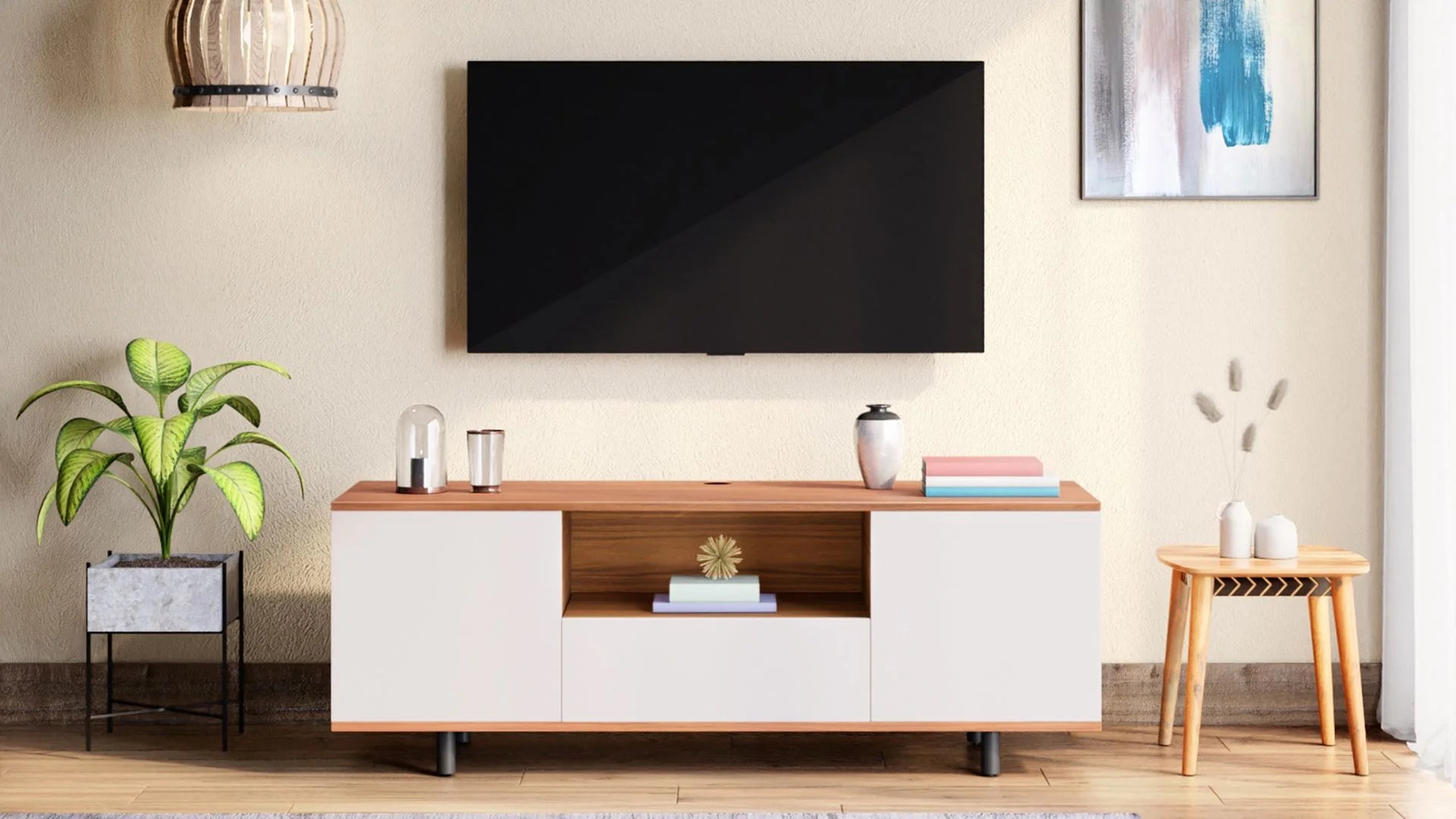Wooden TV Wall Cabinet with Stylish finish, and Combines Strong Joints, Premium Fittings, and Smooth Edges