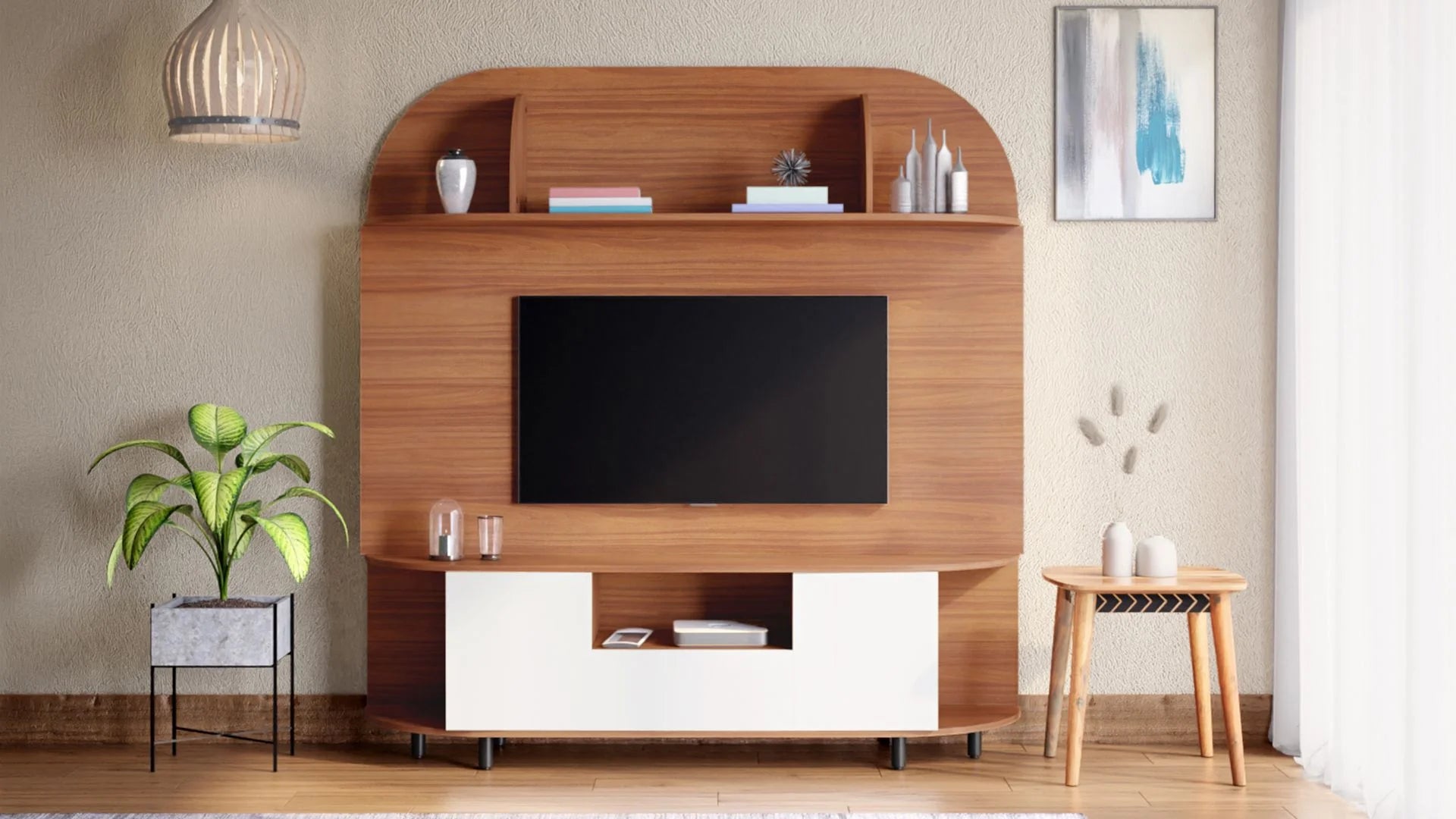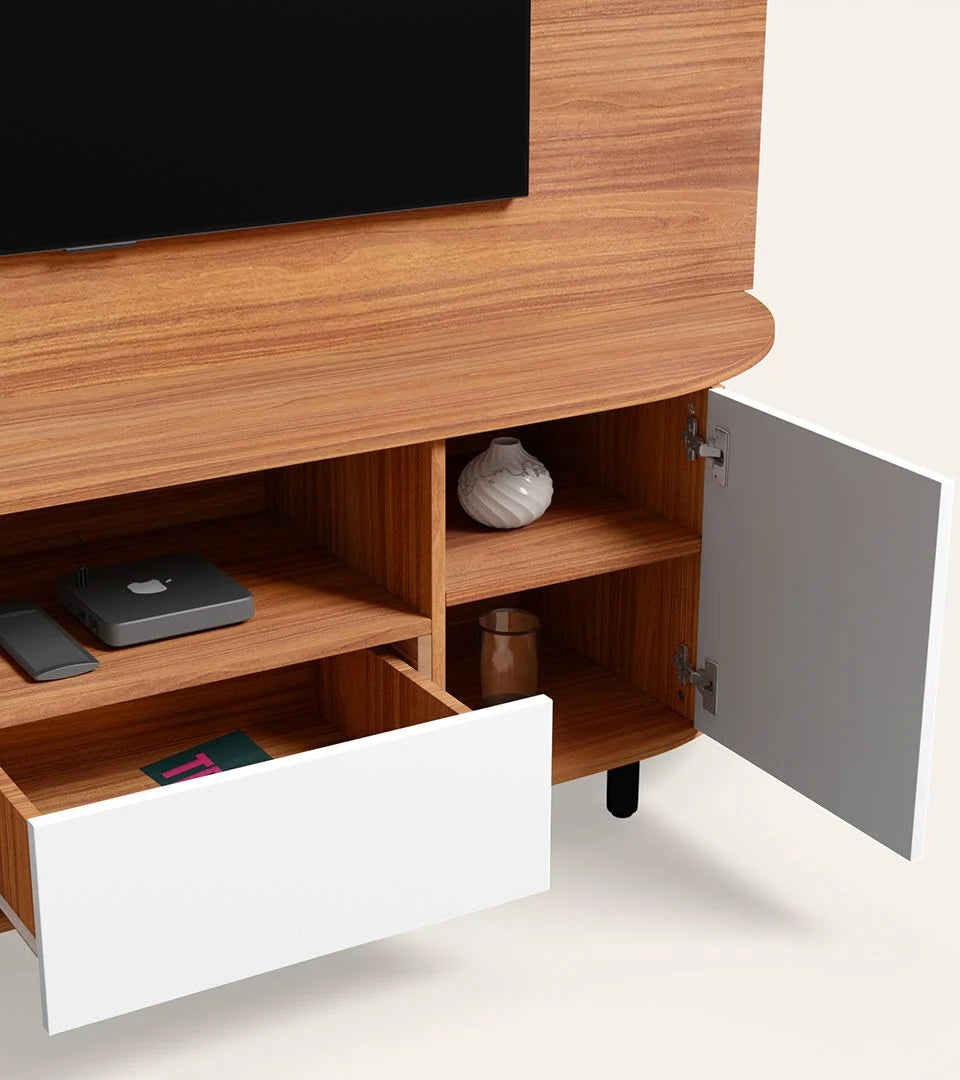 Feature:- Featuring a sleek wall-mounted design, it saves floor space while enhancing your entertainment area with a clutter-free, minimalistic, and modern appeal with multi drawers and Shelves