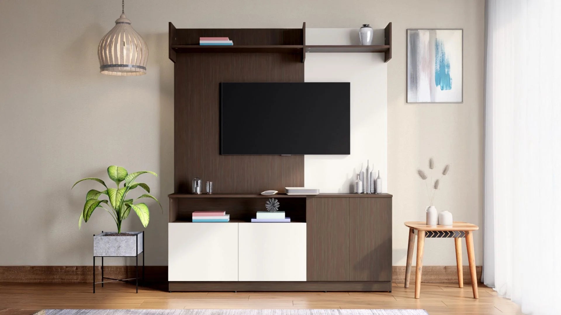 Wooden TV Wall Cabinet with Stylish finish, and Functional Storage for Contemporary Home Interiors